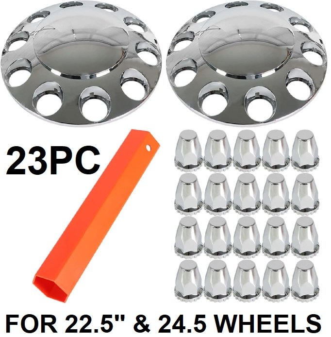 23PC LABLT ABS Chrome Front Wheel Covers FOR SEMI-TRUCK wheels - 22.5" & 24.5" - chrome