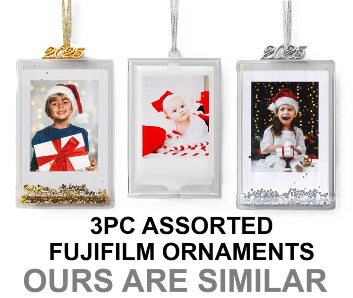3PC ASSORTED WONDERSHOP FUJIFILM INSTAX MINI INSTANT FILM PHOTO ORNAMENTS - GOLD GLITTER/SILVER GLITTER/REVOLVING