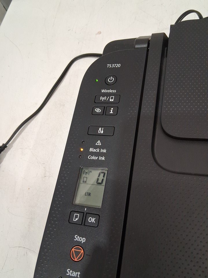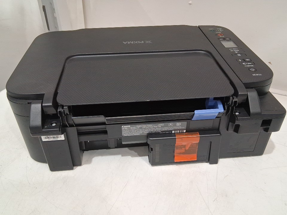 Item has a few minor scuffs/markings on the printer from previous gentle use, see photos. Item arrived with ink cartridges installed however the black ink cartridge is empty and the colour ink cartridge is a third party replacement which also appears to be running low; will likely require replacement ink cartridges before printing, see photos.