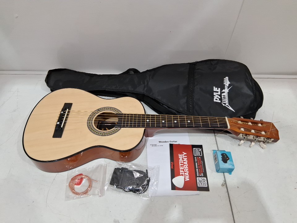 kid's Pyle 6 nylon String beginner classical Acoustic Guitar kit with tuner, picks, shoulder strap & travel bag - 30" - right handed - natural wood (model: pgacls40)