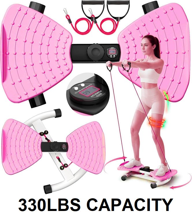 RENRUI WAIST TWISTING TRAINER EXERCISE MACHINE, 330LB CAPACITY - SMART LED MONITOR - PINK, WHITE