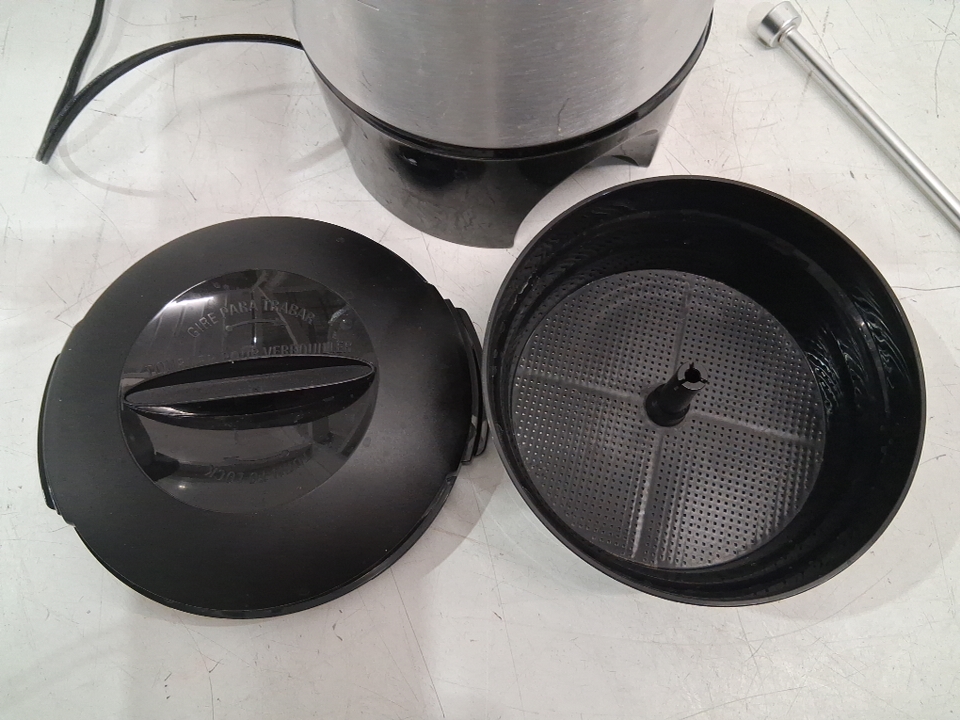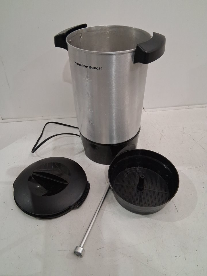 Tested for power and heat. Please note the urn shows signs of previous use coffee residue inside and smudging around the inside, see photos.