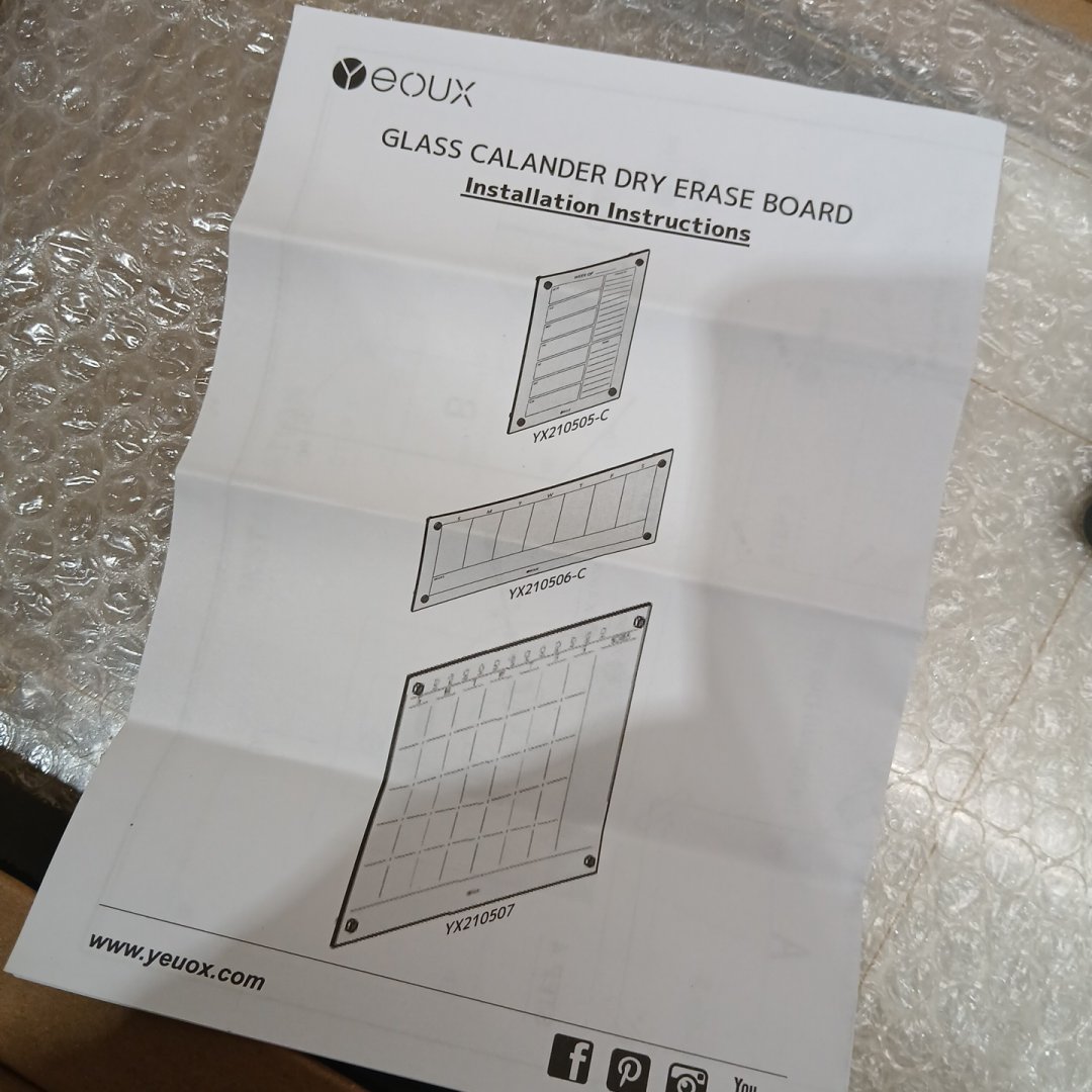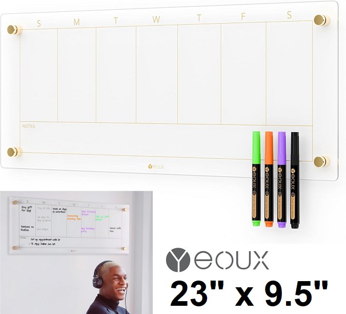 yeoux weekly glass dry erase calander, non-magnetic - 23" x 9.5" - Clear (Model: YX210506-C)