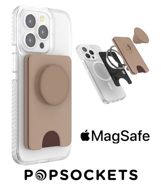 popsockets popwallet card holder and magsafe phone grip - latte brown