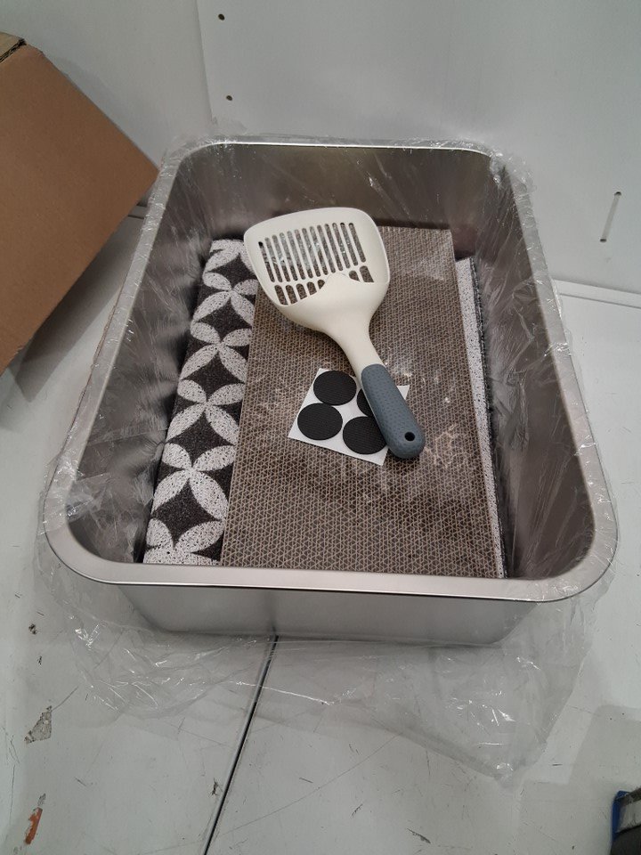 4pc cat litter box and mat kit - 20" x 13.5" - stainless steel