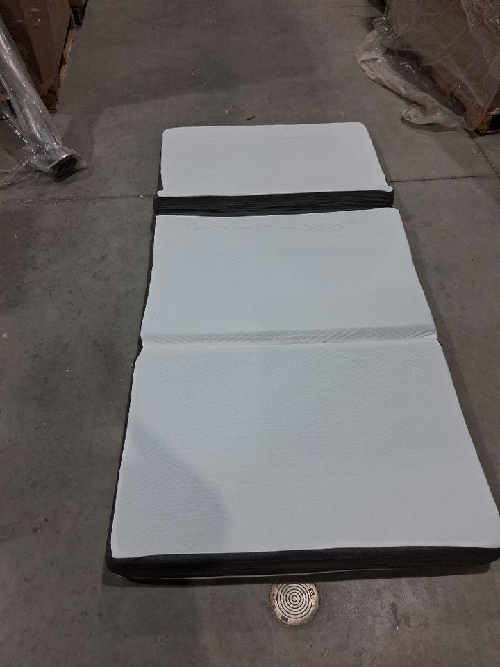 tri-folding non-slip portable floor mattress - narrow twin - 4" thick, 75" x 38" - white/black
