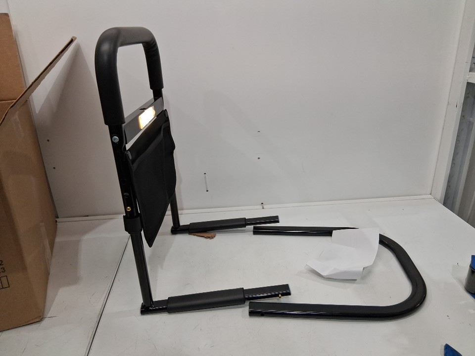 Height Adjustable Bed Assist Rail with Storage Pocket AND LED Induction Light - 400lb MAX - BLACK