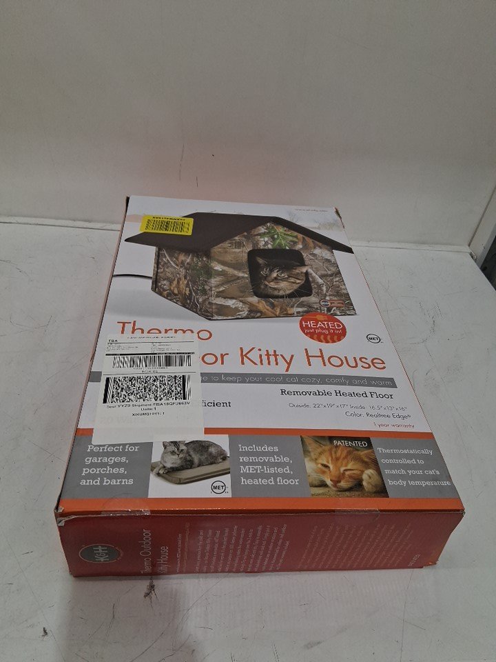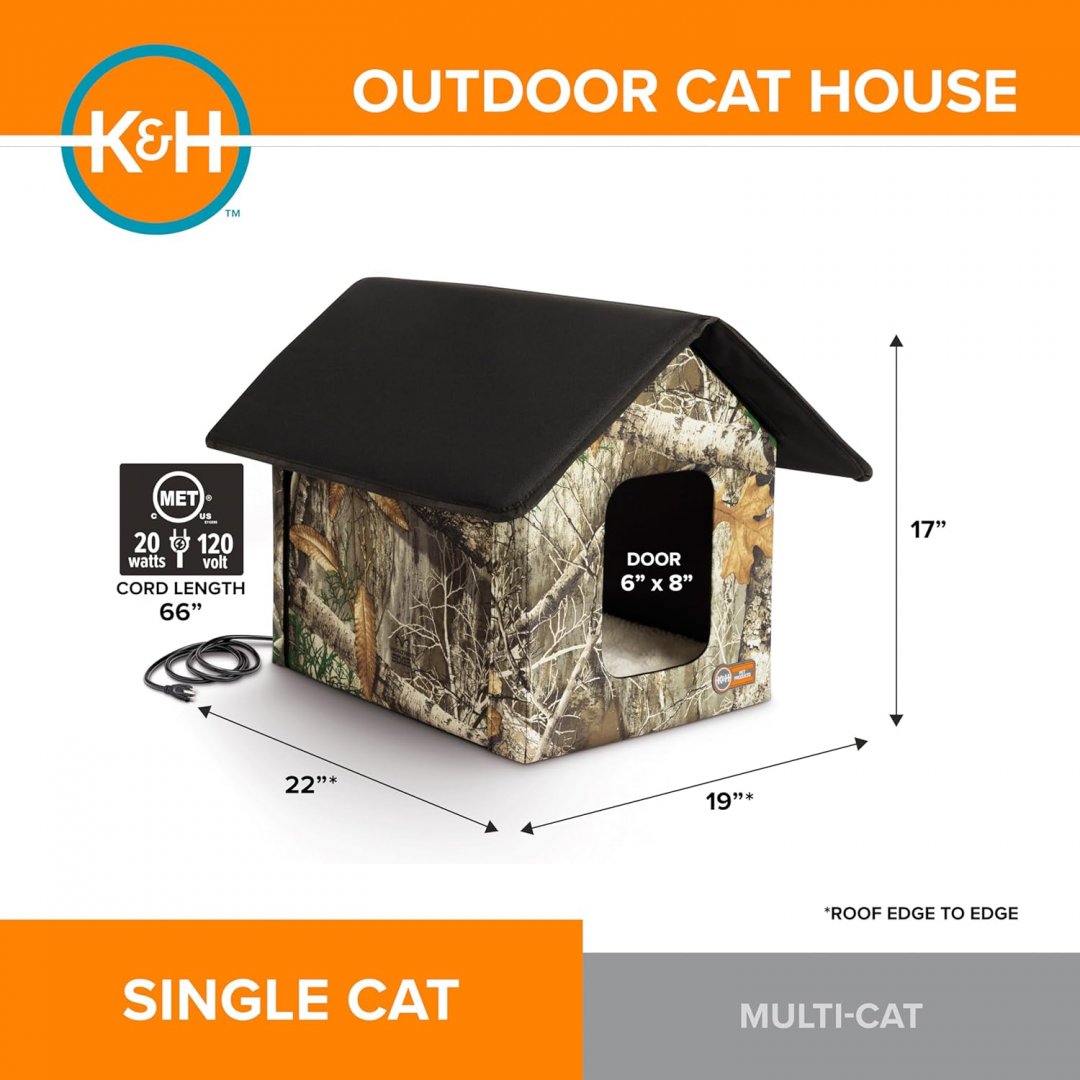 K&H PET PRODUCTS Outdoor Heated Kitty House - 22" X 19" X 17" - 20W - REALTREE EDGE CAMO