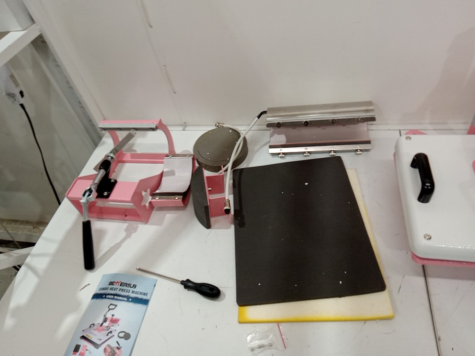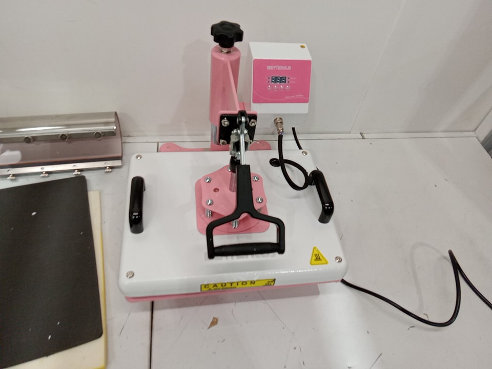 bettersub 5 in 1 heat press machine for diy t-shirts with 15"x15" transfer area and 20oz tumbler mugs - 110v - pink/white