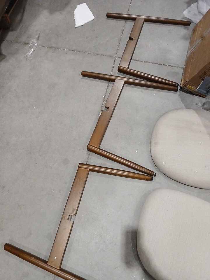 Please note there is a presence of scuffs/scratches on connecting points of the chairs, indicating prior installation. Generic hardware will be required for installation as there is none in the package. See photos.