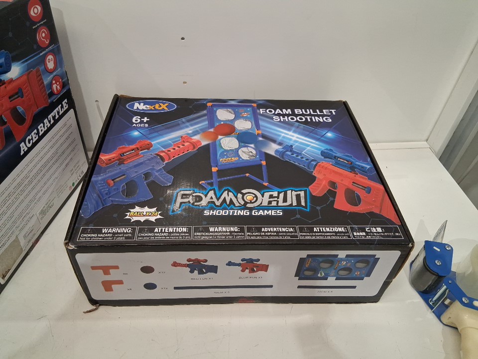 2PK Nextx Foam Bullet Blasters with Shooting Target Stand - Red/Blue