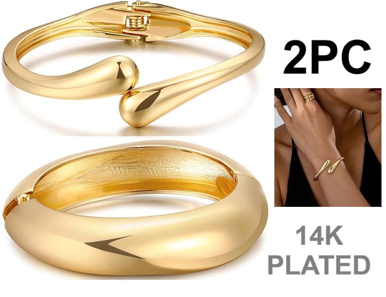 2PC WOMENS chunky stackable bangle set - 14k gold plated