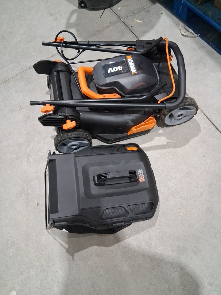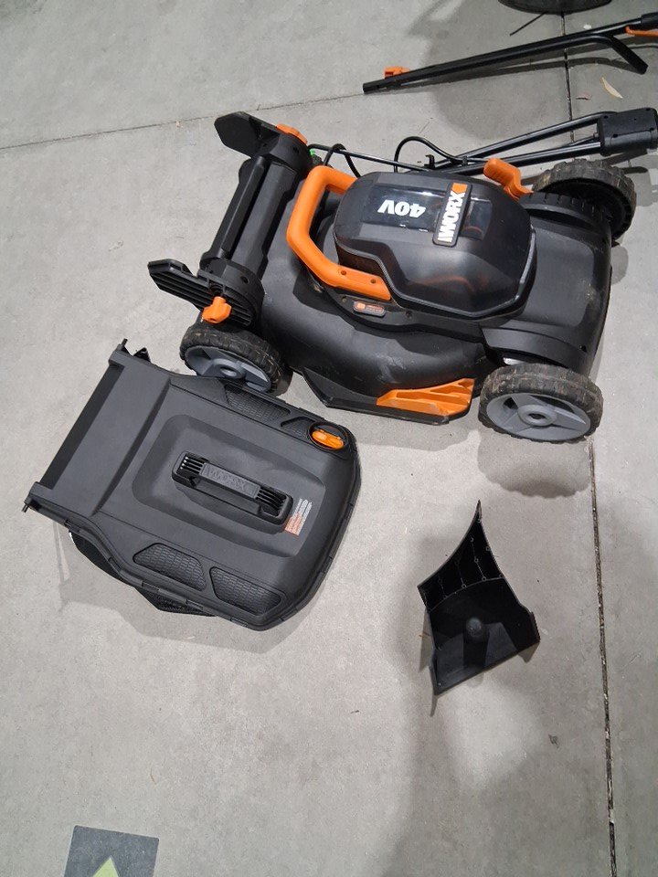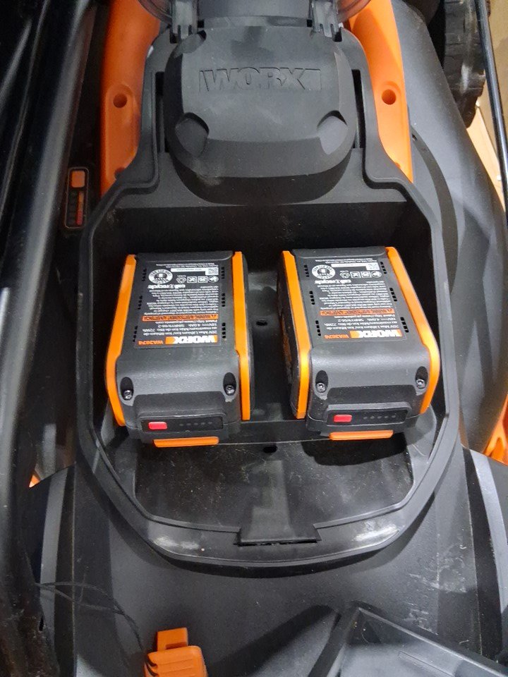 worx 2-in-1 20v 4ah cordless brushed lawn mower - 17" - orange (model: wg743)