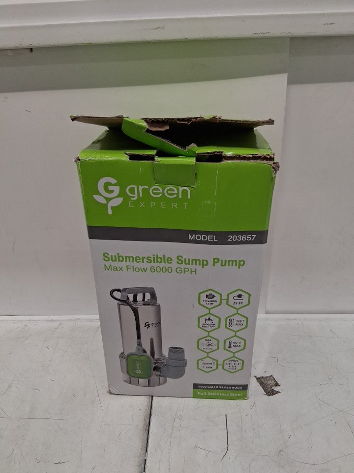 green expert submersible Sump Pump - 1.5hp - 6000 GPH - 23ft depth - silver/green (model: 203657)