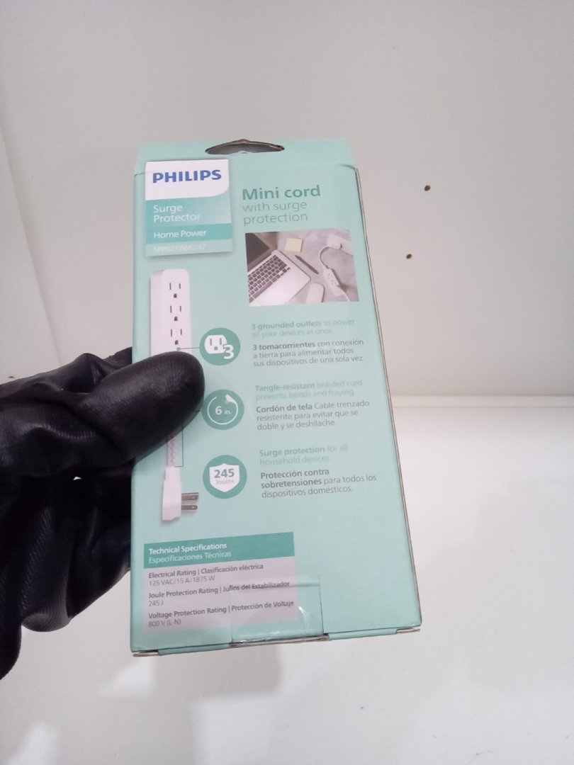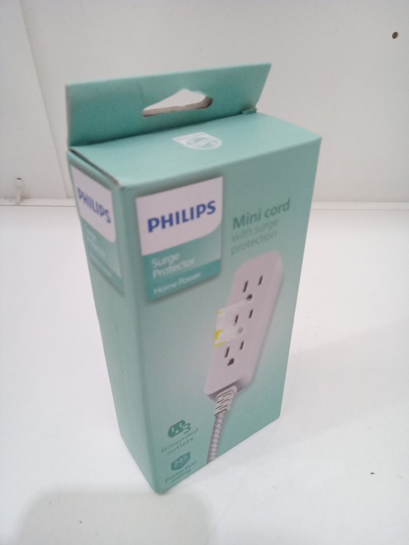 Philips Mini Cord with Surge Protection, 3 Outlets, and Flat Plug - 245J Protection - White (Model: SPP8272WC/37)