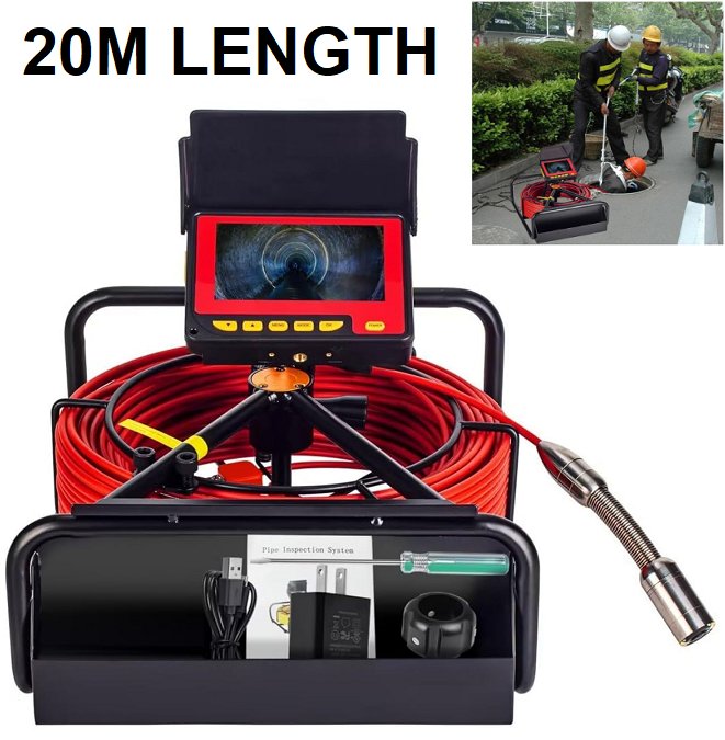jqkjcam snake sewer camera machine with Light Thickened 5mm Distance Counter Cable -17mm/0.67" Waterproof Plumbing Endoscope - 20M LENGTH - 8500MAH BATTERY - (MODEL: DVR-20M)