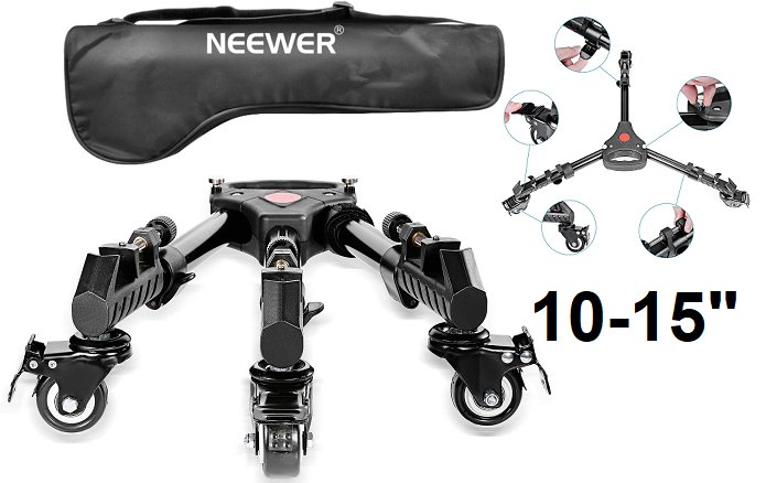 NEEWER PROFESSIONAL HEAVY DUTY CAMERA TRIPOD DOLLY WITH 2" RUBBER WHEELS AND ADJUSTABLE LEGS - BLACK (MODEL:NW-600)