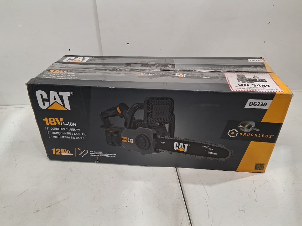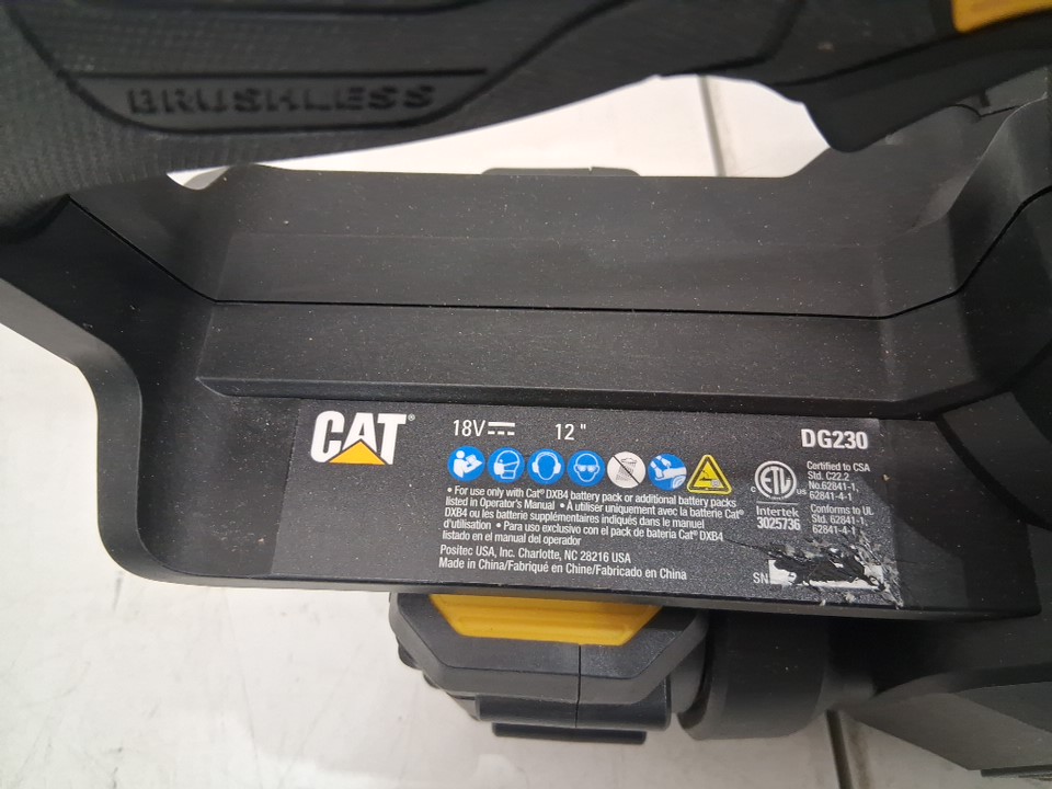 cat 18v brushless 12" electric chainsaw with tool-free chain tensioning (model: dg230)