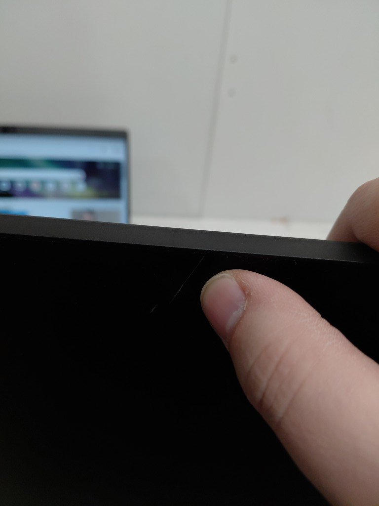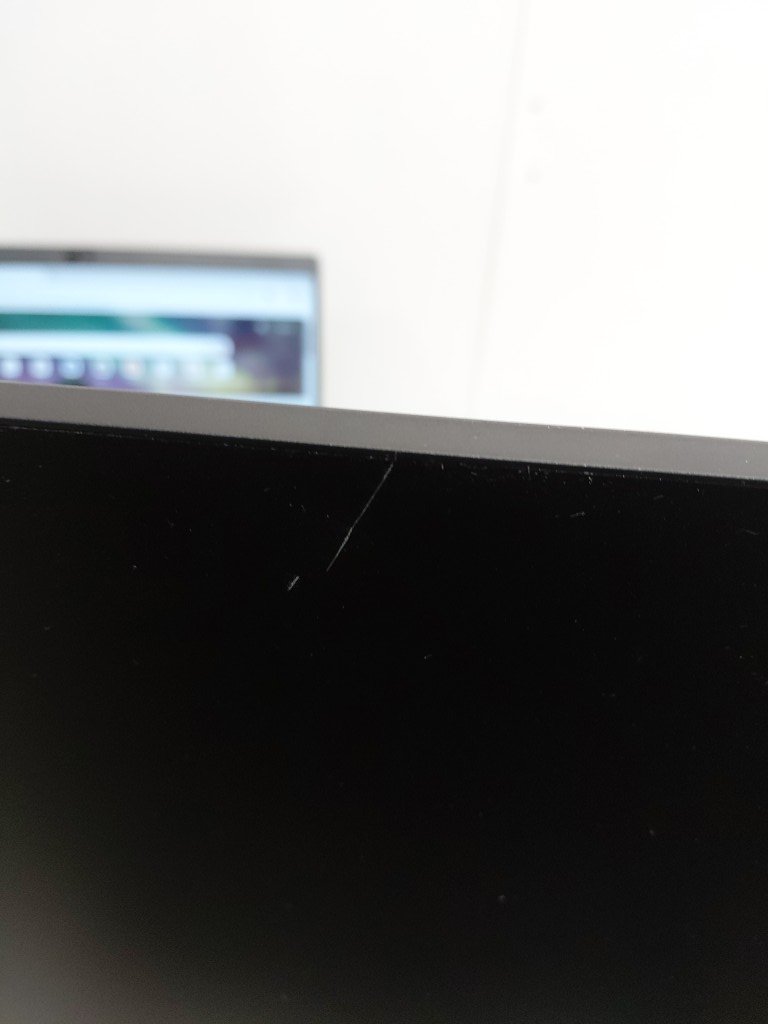 has a deep scratch at the top of the screen knob is loose and doesn't always work tested & working