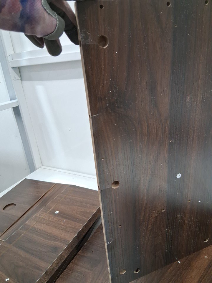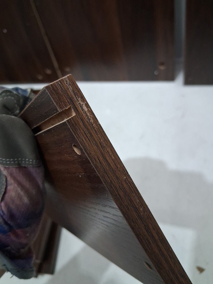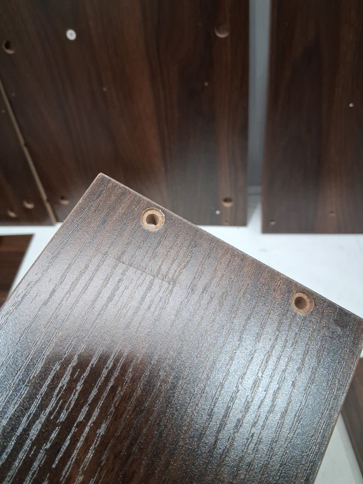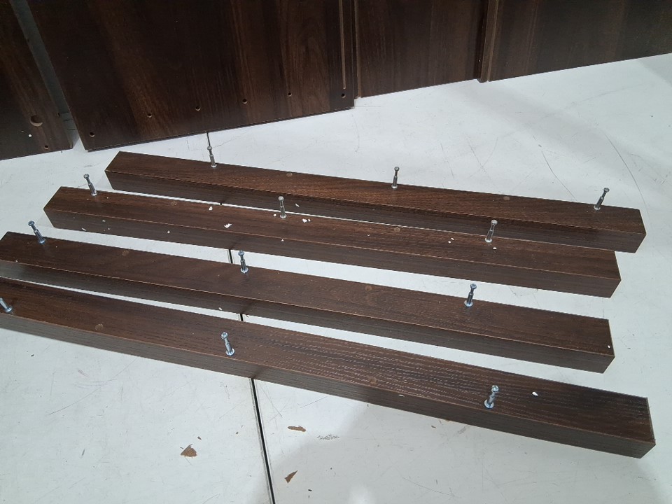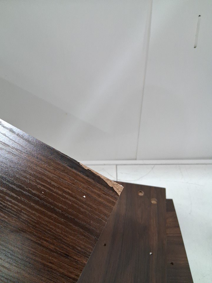 Item was previously assembled. There are minor scratches and scuffs present throughout. There is also one piece with damage to the installation areas (see photos).