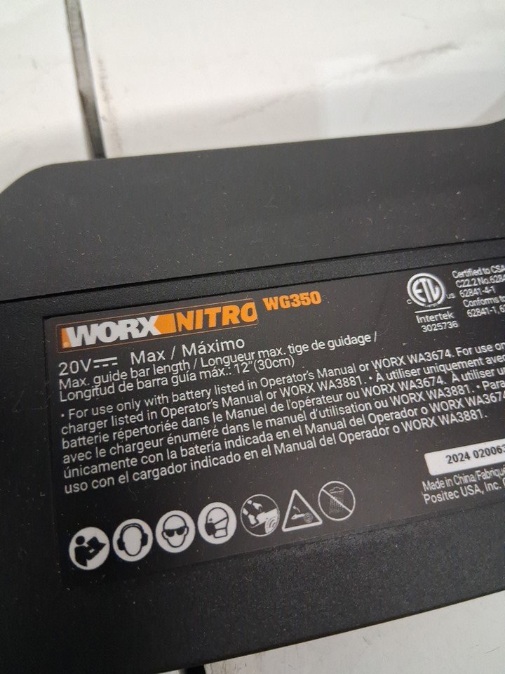 worx nitro 20v cordless brushless electric chainsaw (model: wg350)
