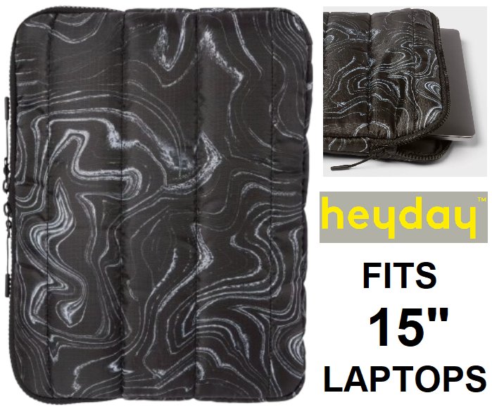 HEYDAY QUILTED LAPTOP SLEEVE - FOR 15" LAPTOPS - BLACK MARBLE