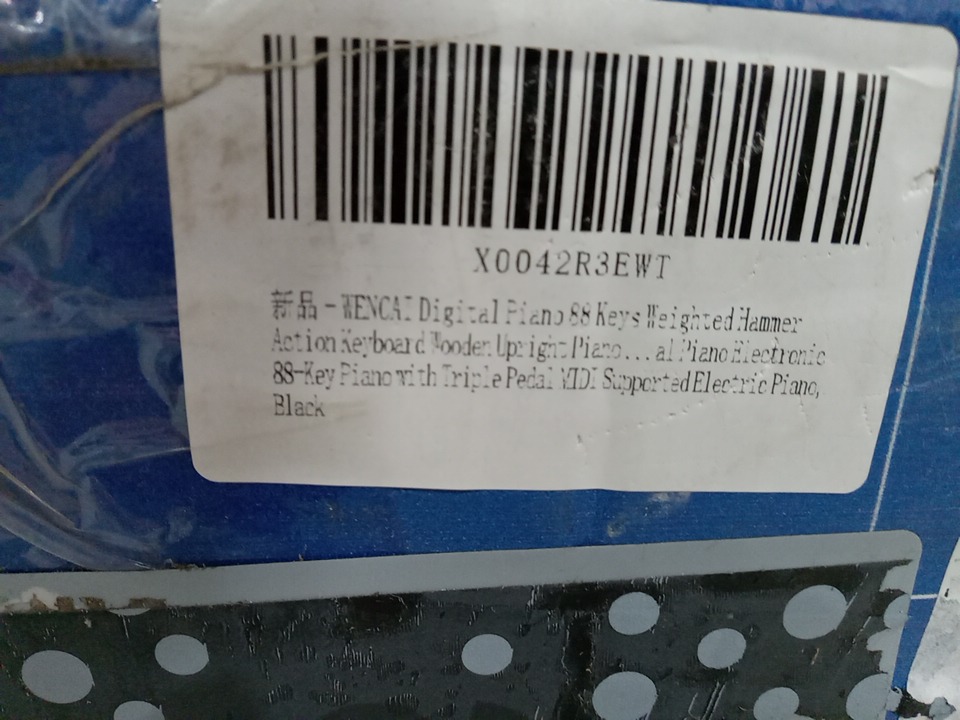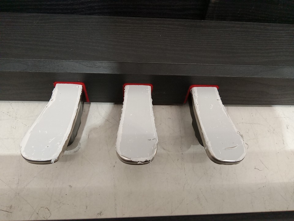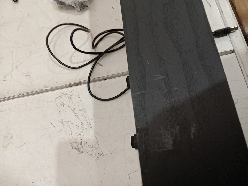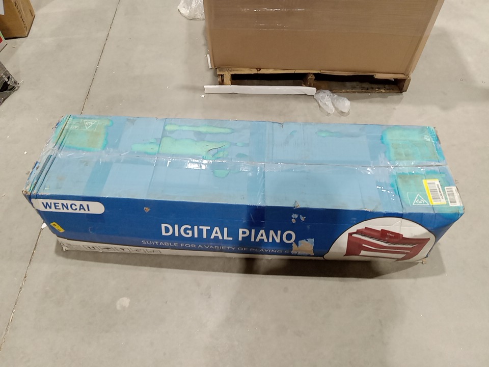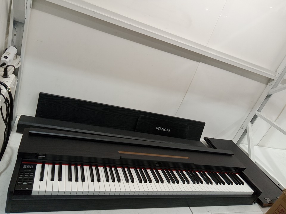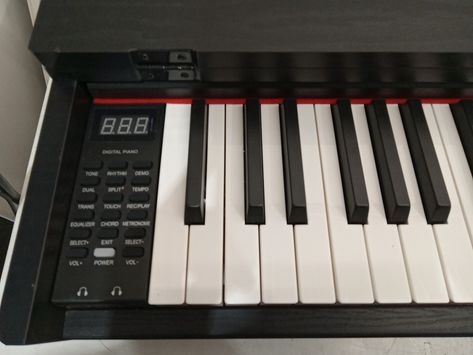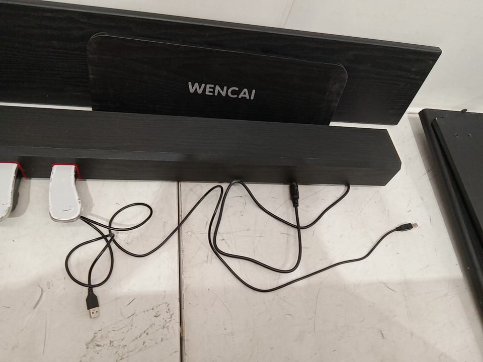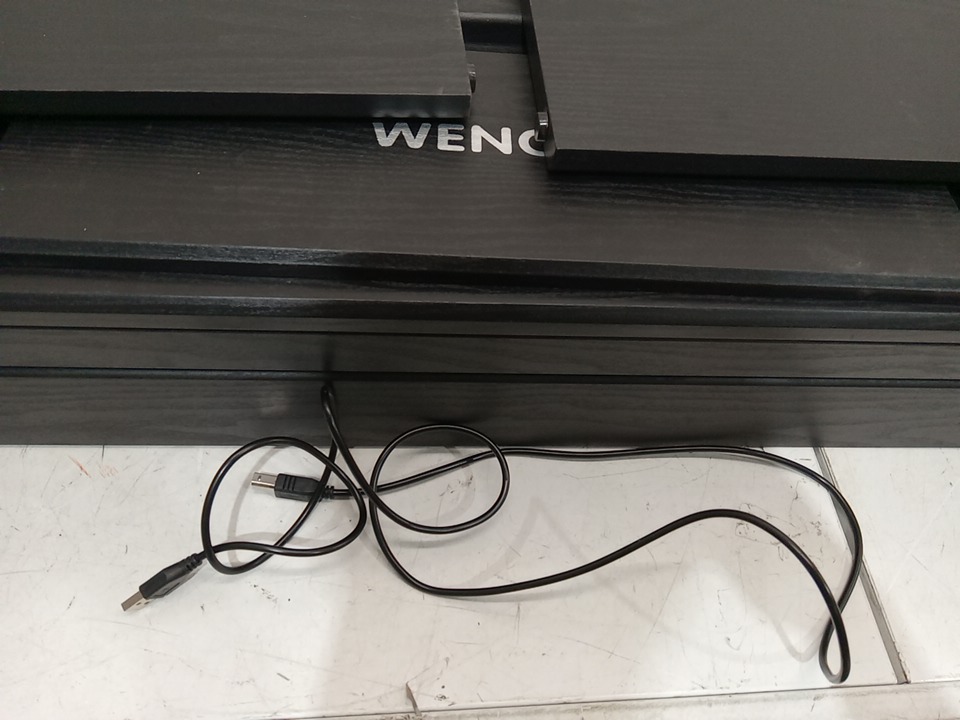we could not test this item due to the power cord being missing, upon inspecting the wood parts for the stand, we have found that this item has been previously assembled, this is due to the chips, scuffs, scratches, blemishes and dents / fraying found on the wood parts and on the assembly points of the wood parts, this item is not usable in its current state due to the power cord being missing, and we are unable to test the power due to not having the necessary cables, we are unsure if this piano will have working power when used with a power cable, due to the fact that we could not test, if it does not work when a compatible power cable is connected, that power may be able to be restored to the piano with maintenance and repairs. their is some fraying on the triple pedals as well. see photos below.