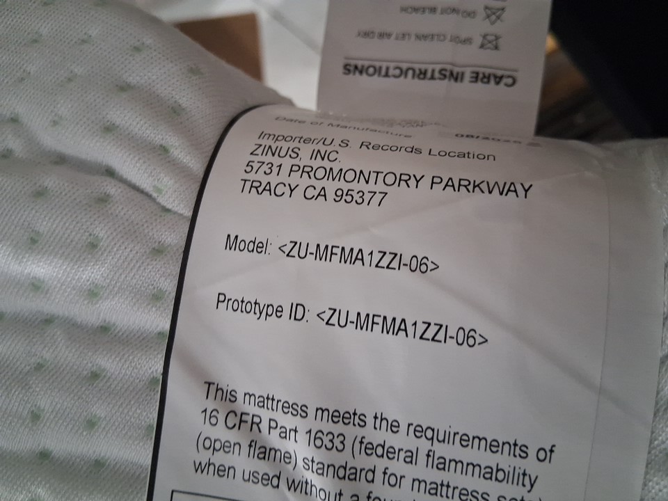 ZINUS Hybrid Padded Spring Mattress - SMALL SINGLE - 6" - white - (model:‎ZU-MFMA1ZZI-06N)