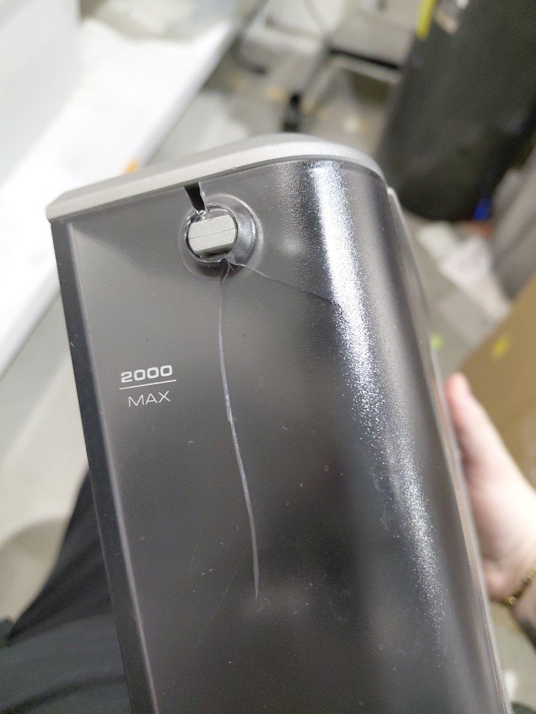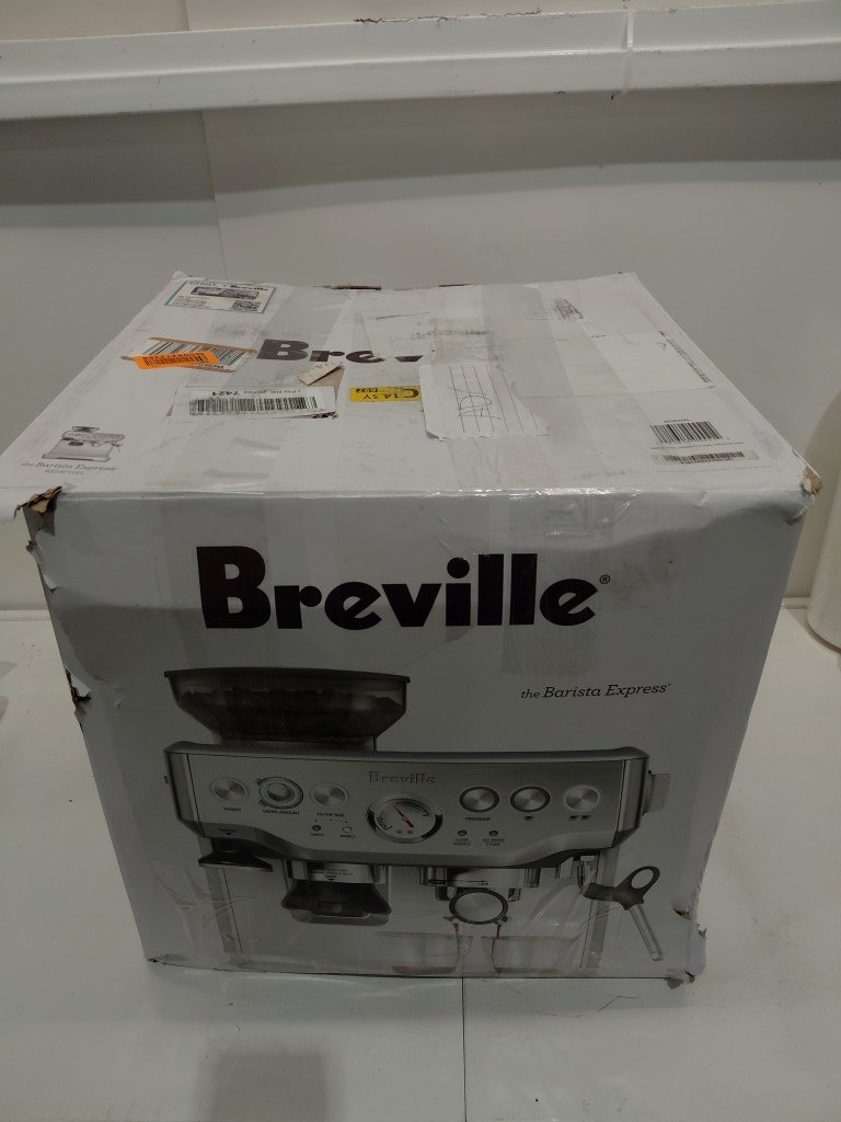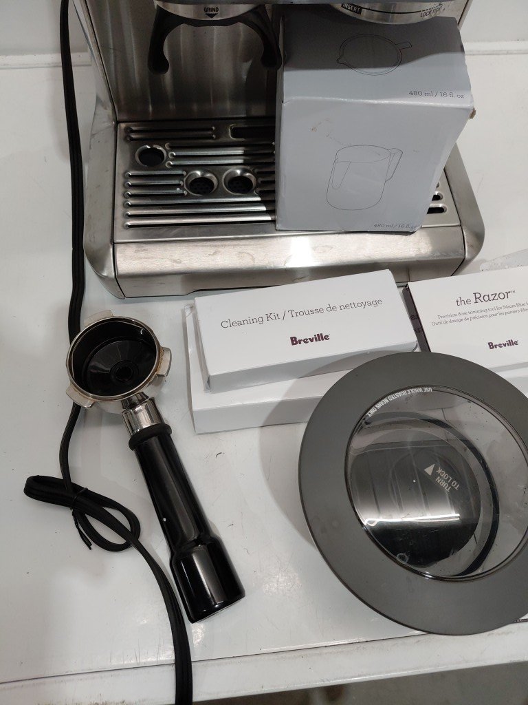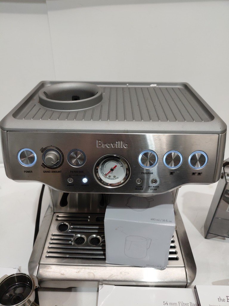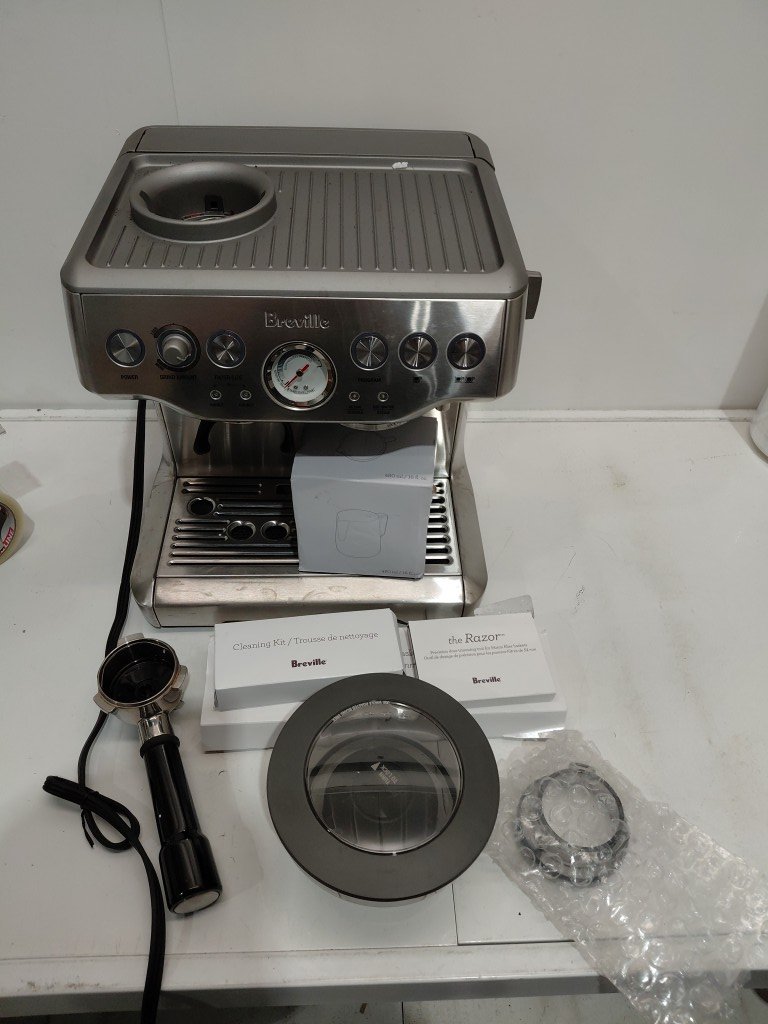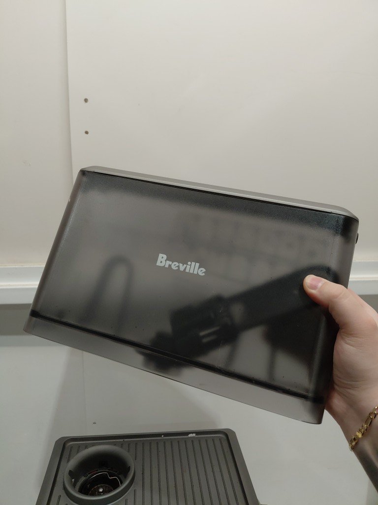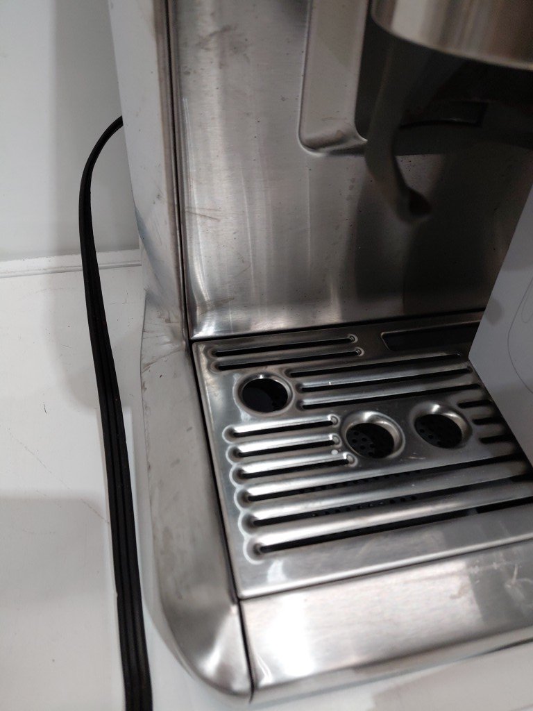 shows signs of previous use (coffee residue) has a crack in the water tank tested for power.