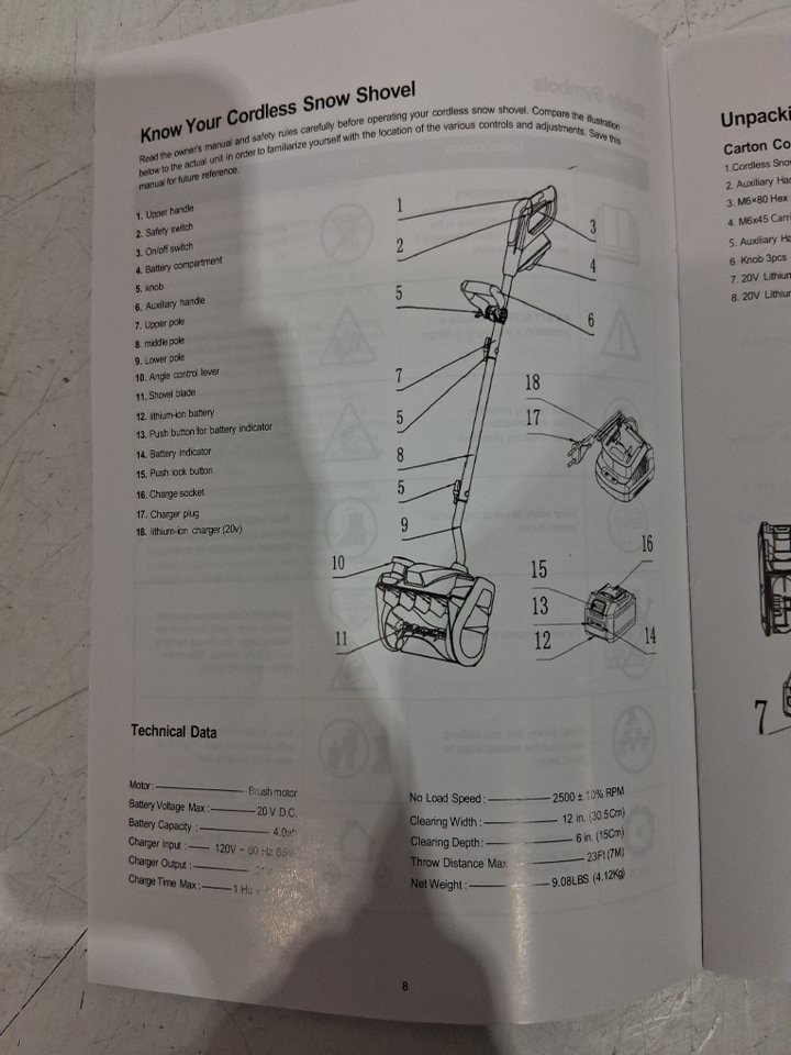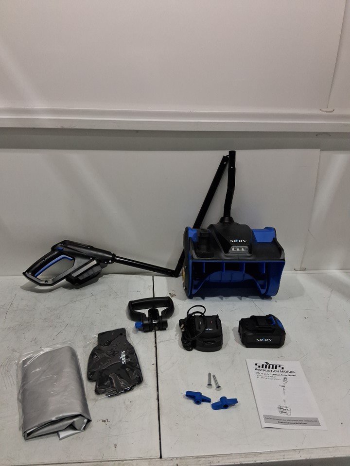 SOYUS Electric Snow Shovel with LED Light, Directional Plate & Adjustable Handle - (4.0Ah Battery, Charger & Cover Included)- 20V - 12" - BLUE/BLACK (MODEL: SY-WRSS02)
