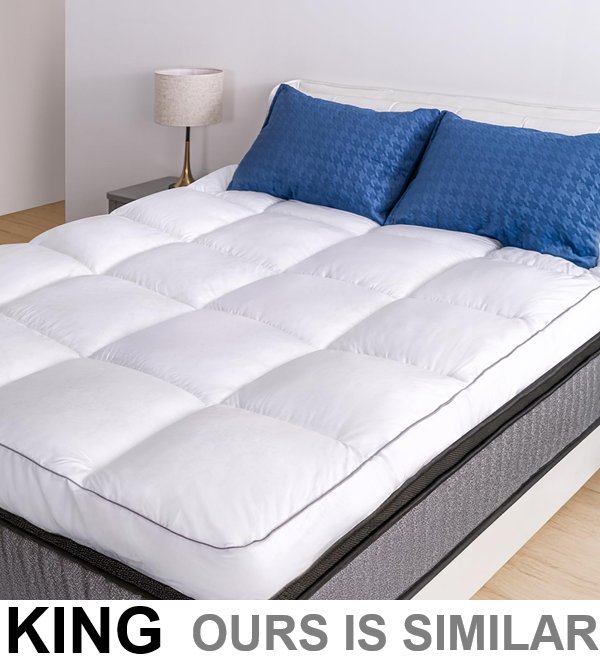 thick cooling deep pillow top breathable down alternative plush mattress topper - KING - white/BLUE