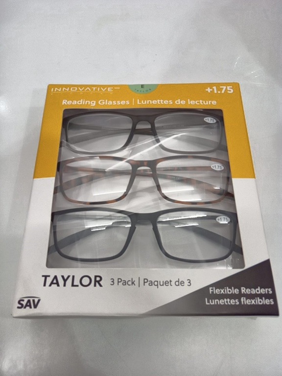 3PK Innovative Eyewear TAYLOR Reading Glasses - +1.75- Assorted Designs (Model: 8855250)