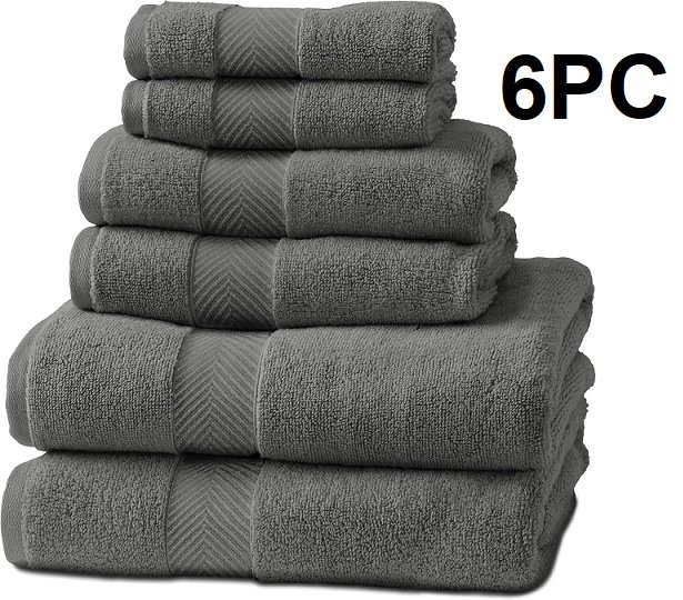 6pc Natureva Bamboo bath towels - 2 Bath towels, 2 Hand towels, 2 washcloths - Graphite/grey