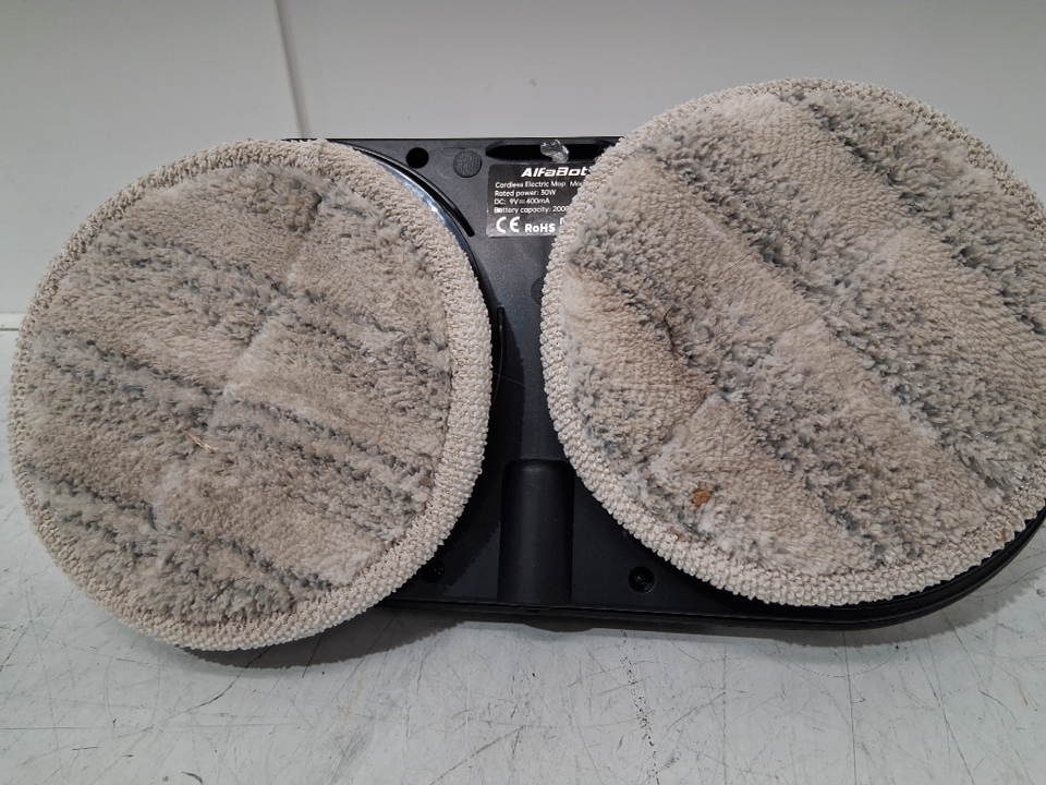 Please note that the pads are slightly dirty (see photos) due to previous light use. Is replaceable: https://www.amazon.ca/Replacement-Mopping-AlfaBot-Scrubber-Cleaning/dp/B0BDKDT1JG Tested for power/function.