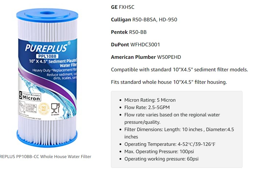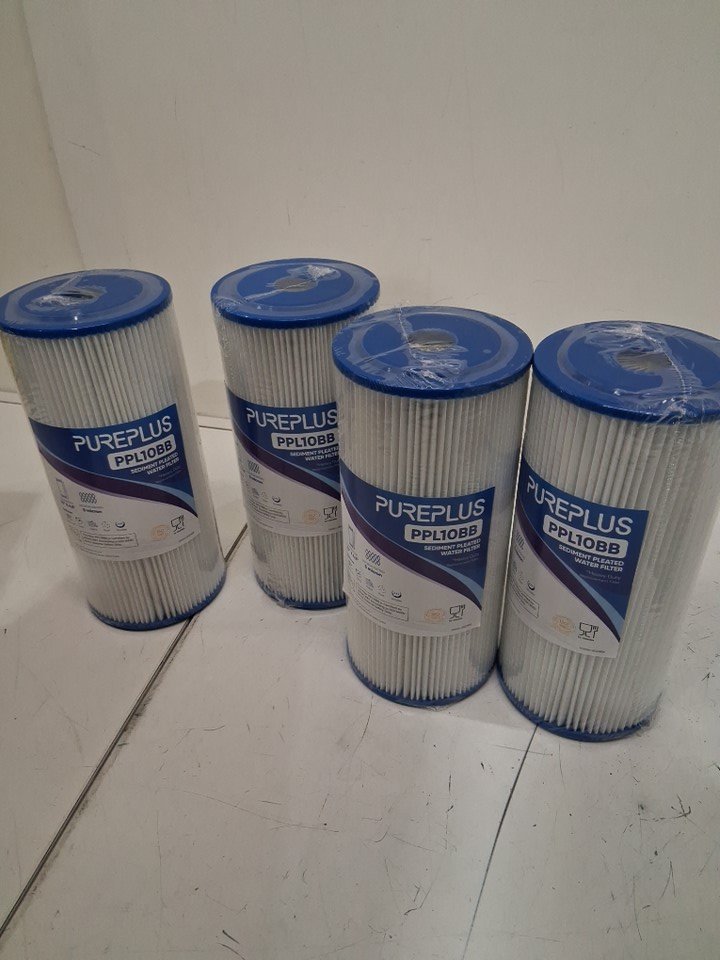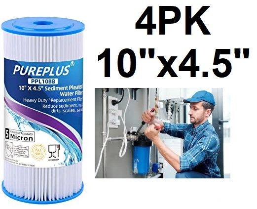 4PK PUREPLUS PLEATED SEDIMENT FILTER FOR WELL WATER - 10"x 4.5" - WHITE/BLUE (MODEL: PPL10BB)