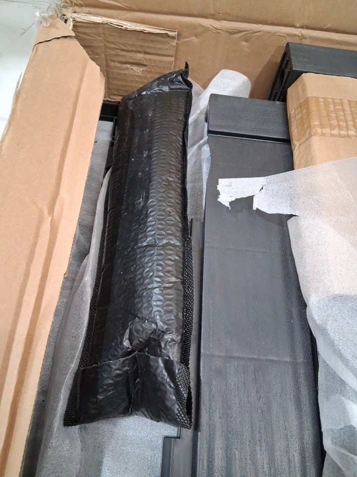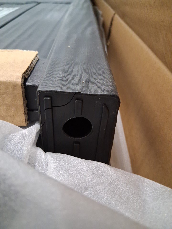 There are some small cracks and pieces broken off near the corners/edges of some parts due to shipping - see photos. This damage should not affect the assembly or stability of the box, but may result in more exposure to the elements if left unrepaired. Appears to be in new condition otherwise.