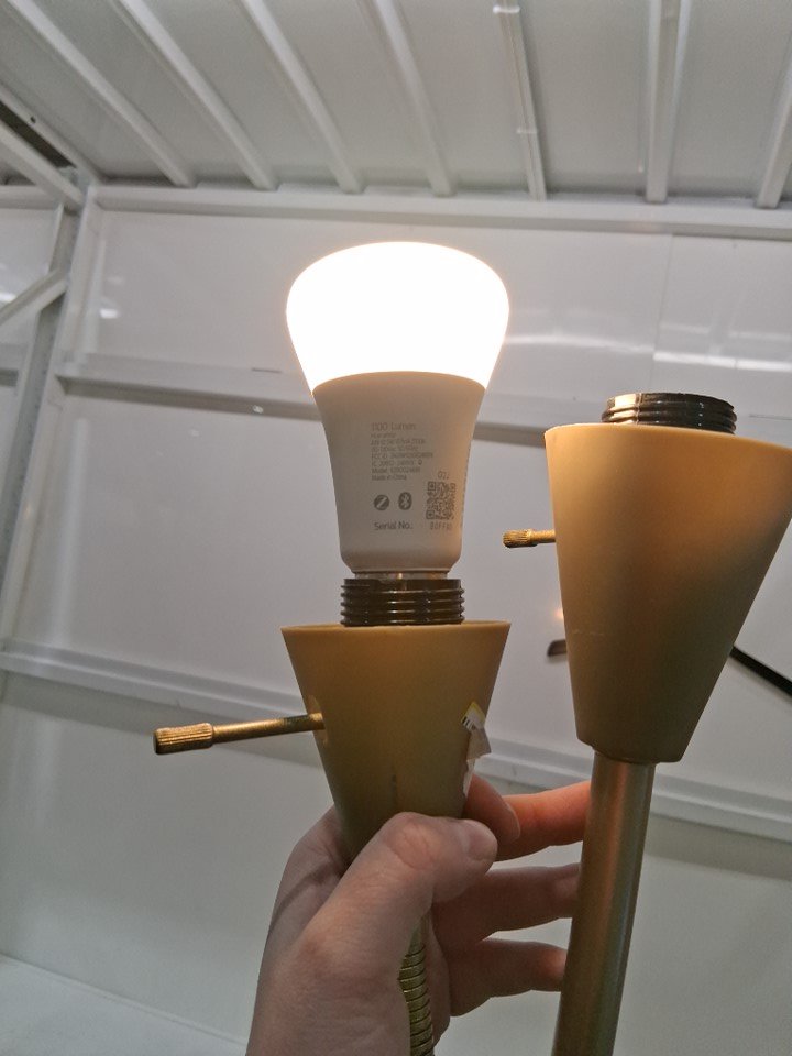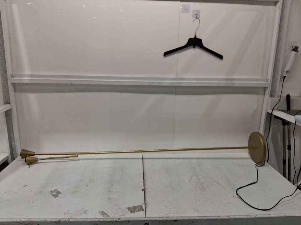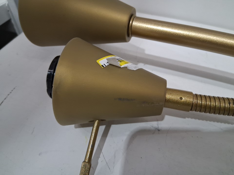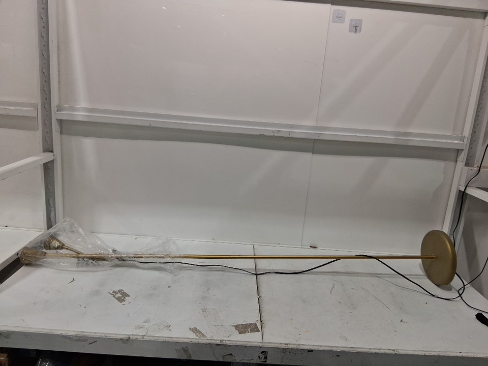 item is missing shades, has scuff marks in the gold on the heads on pole, item also has a stick stuck to one head ( see photos)