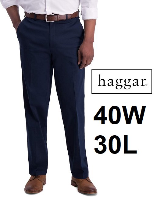 men's haggar Iron Free Premium straight fit DRESS PANT - 40W x 30L - navy blue (style:1986565)