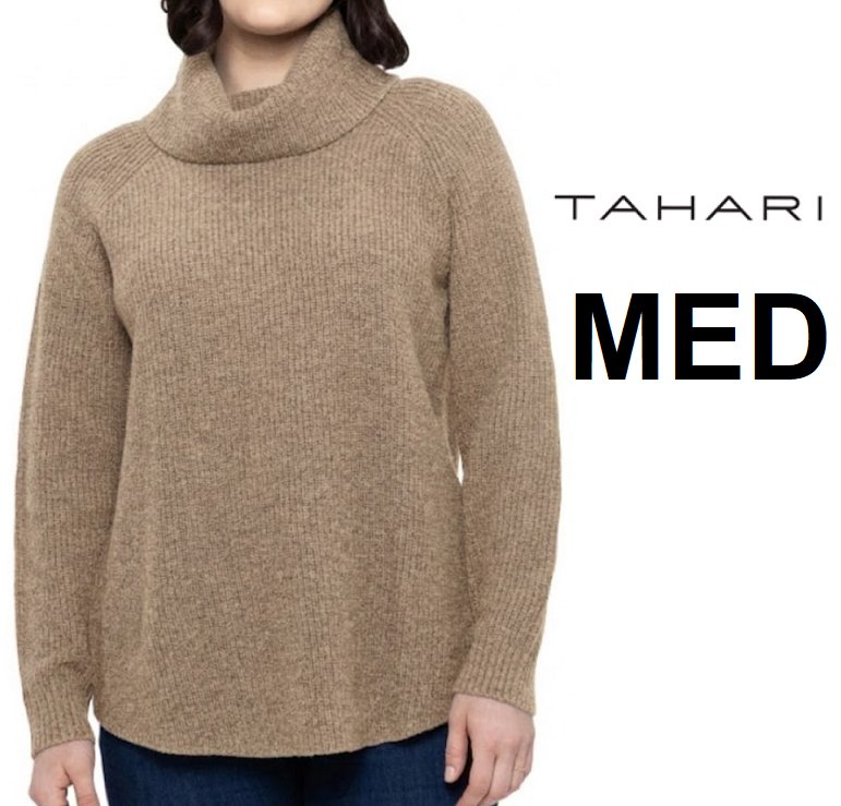 TAHARI MERINO BLEND turtleneck SWEATER - medium - beige (style: 2707001)