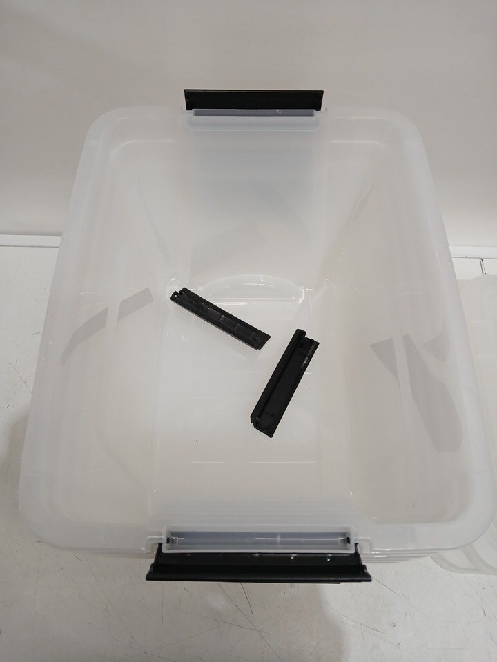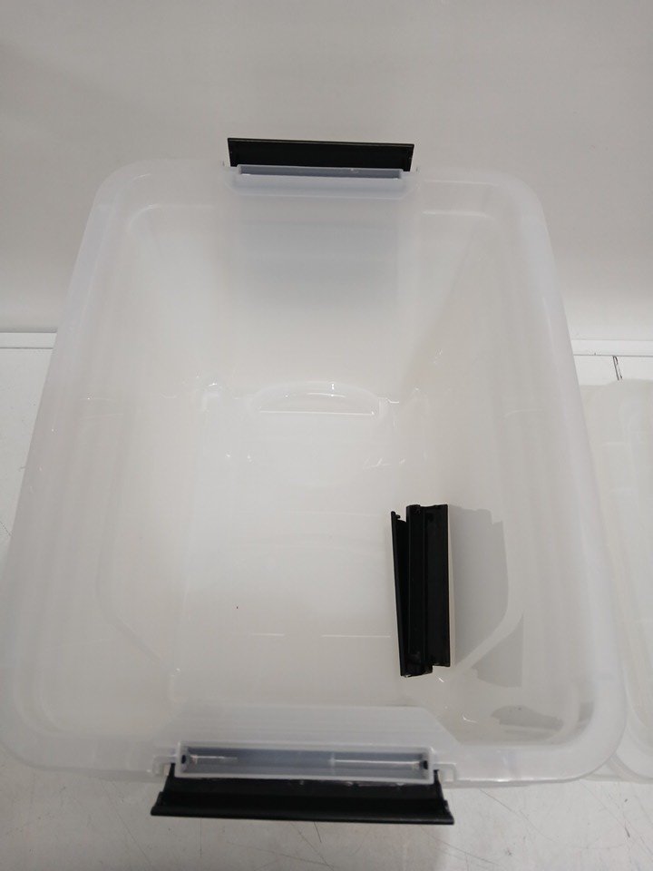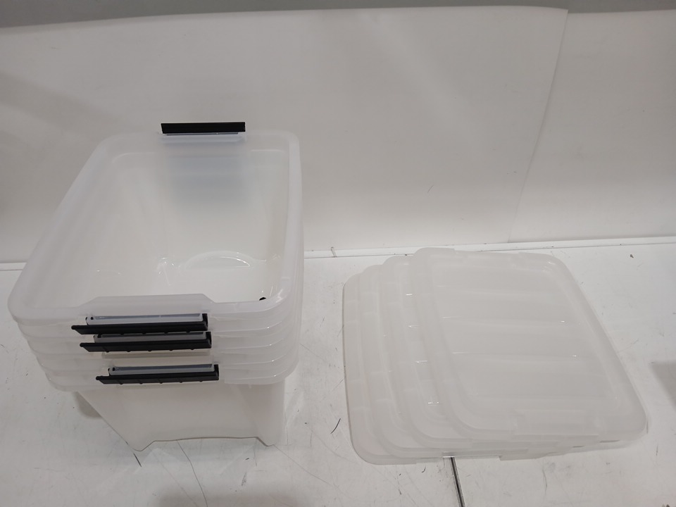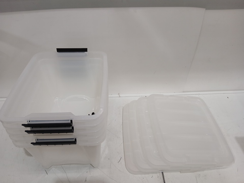 - One lid missing (has 4/5 lids in total). - Handlebars have come off of some containers, still included inside. See photos included
