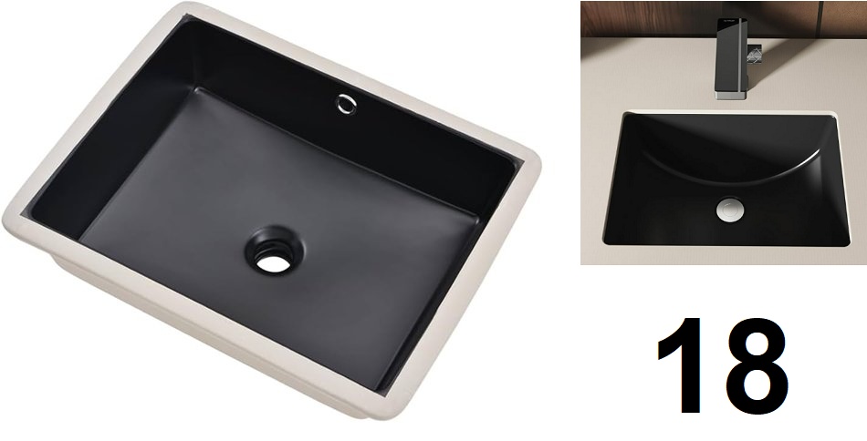MEJE Rectangle Undermount Bathroom Vessel Sink -18" - Black - (model:‎MJ-202H)