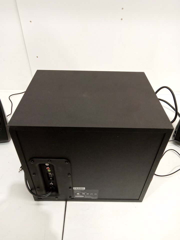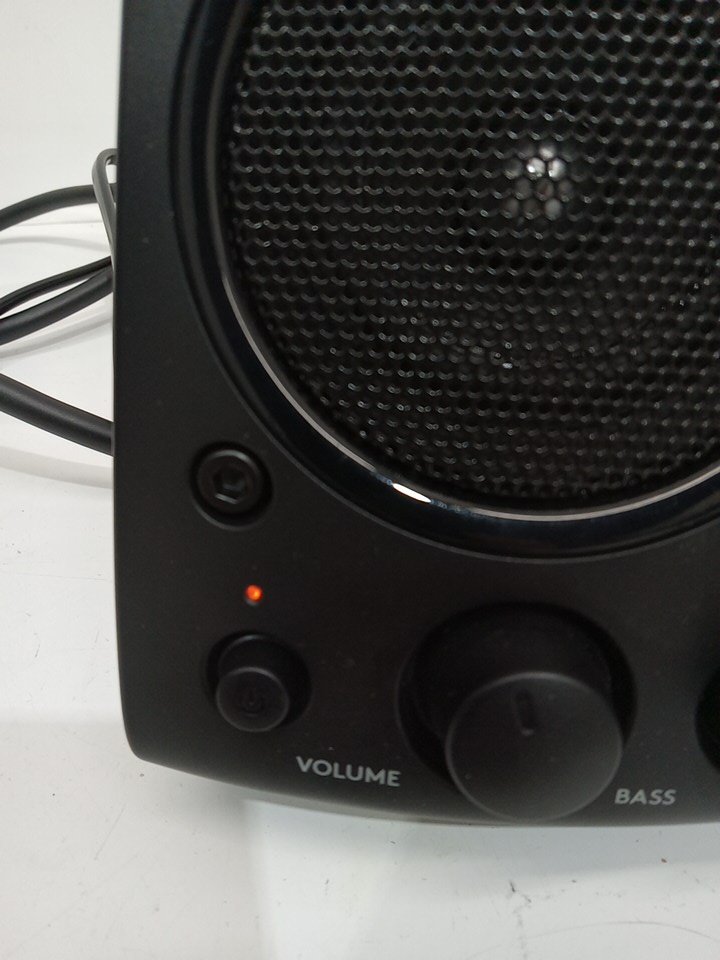 Item shows signs of being previously used prior to being returned (there are some scuffs/scratches on the the housing of the subwoofer). Item tested ad working however, during our testing we found when turning the bass level up there seems to be some crackling sounds coming from the subwoofer.