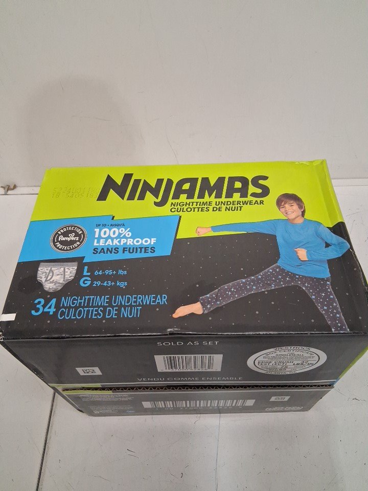 34PK UNISEX YOUTHS NINJAMAS NIGHTTIME UNDERWEAR WITH ODORMASK & ALL-NIGHT LEAK PROTECTION - LARGE - BLUE/GREEN/WHITE