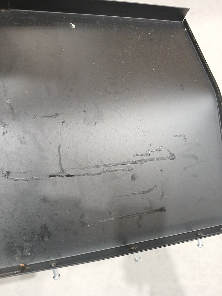 This item is heavily damaged and dirty. This item has a large dent at its top, is missing its under shelf, has scratches, is missing its silver tray where the food is placed, and it cannot stand on its own because it is missing the necessary pieces.
