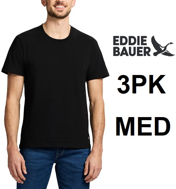 3PK Men's Eddie Bauer Cotton Crew Neck T-Shirt - MEDIUM - BLACK (STYLE: 1776501)