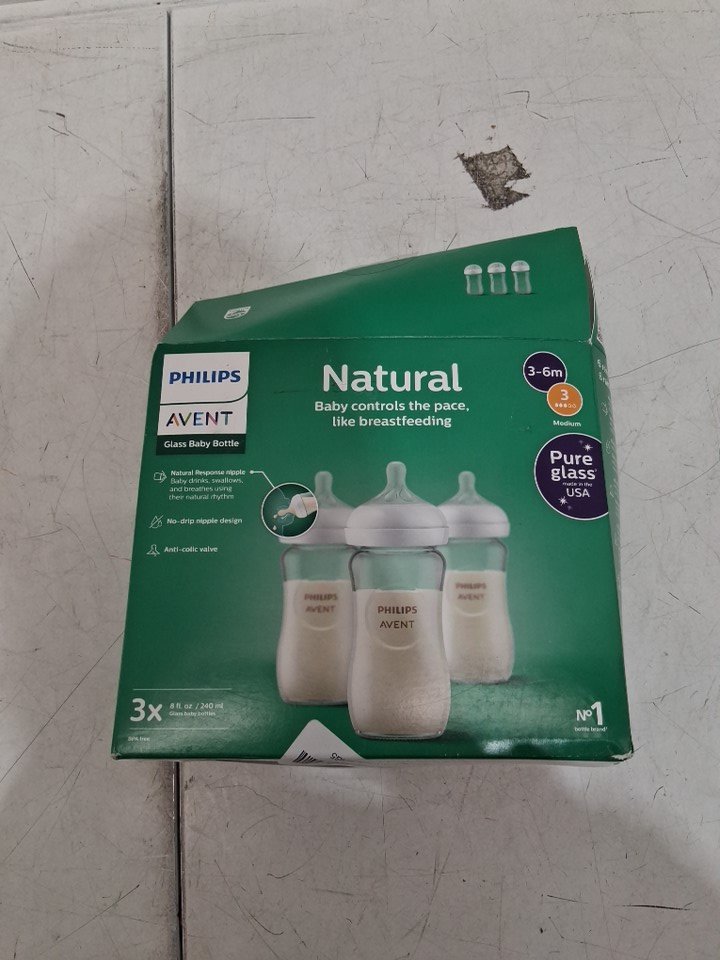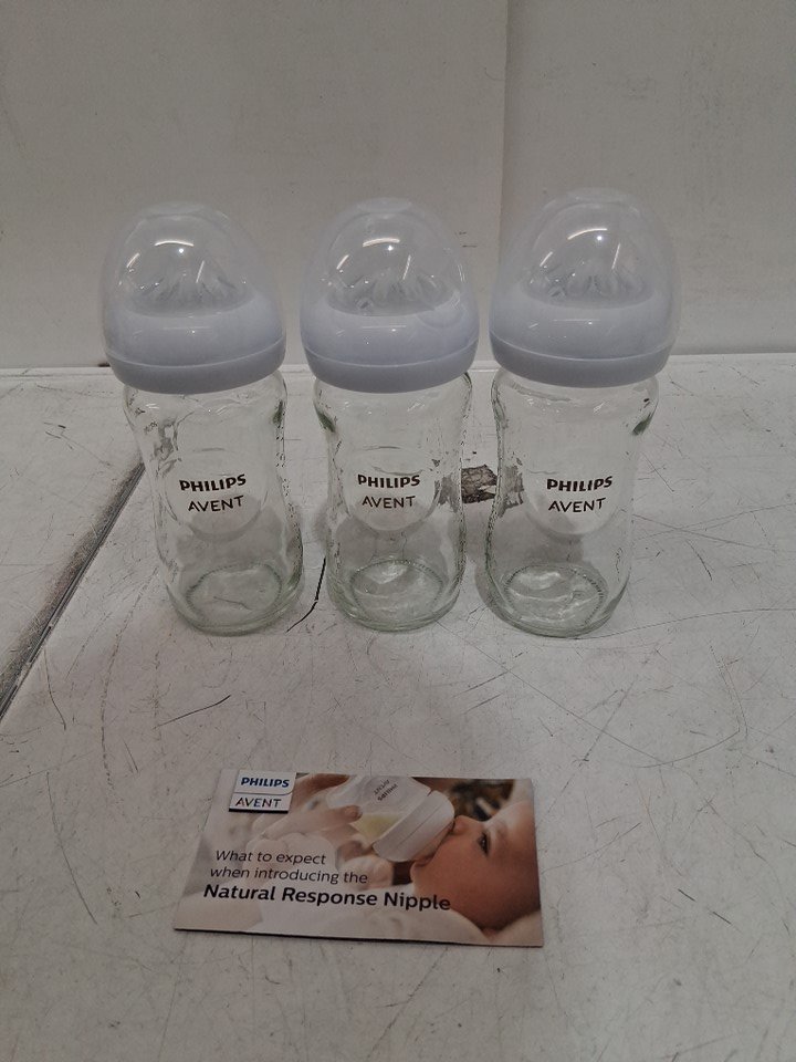 3PK PHILIPS Avent Natural Glass Baby Bottles with Natural Response Nipples - Medium Flow, Flow 3 - 8OZ - WHITE/CLEAR (model:‎ SCY913/03)