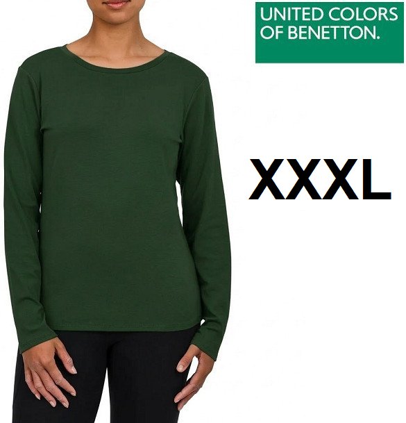 women's United Colors of Benetton Long Sleeve Supima Cotton Tee - xxxl - dark green (STYLE: 1805199)