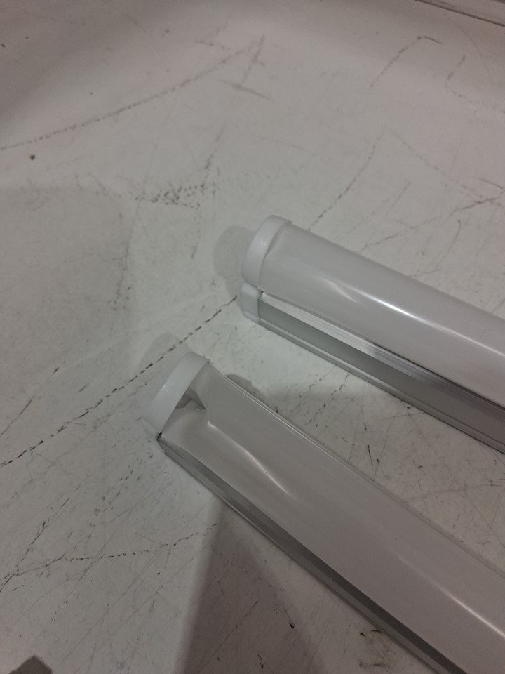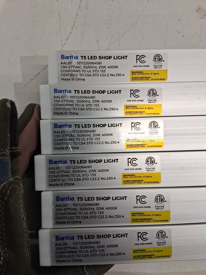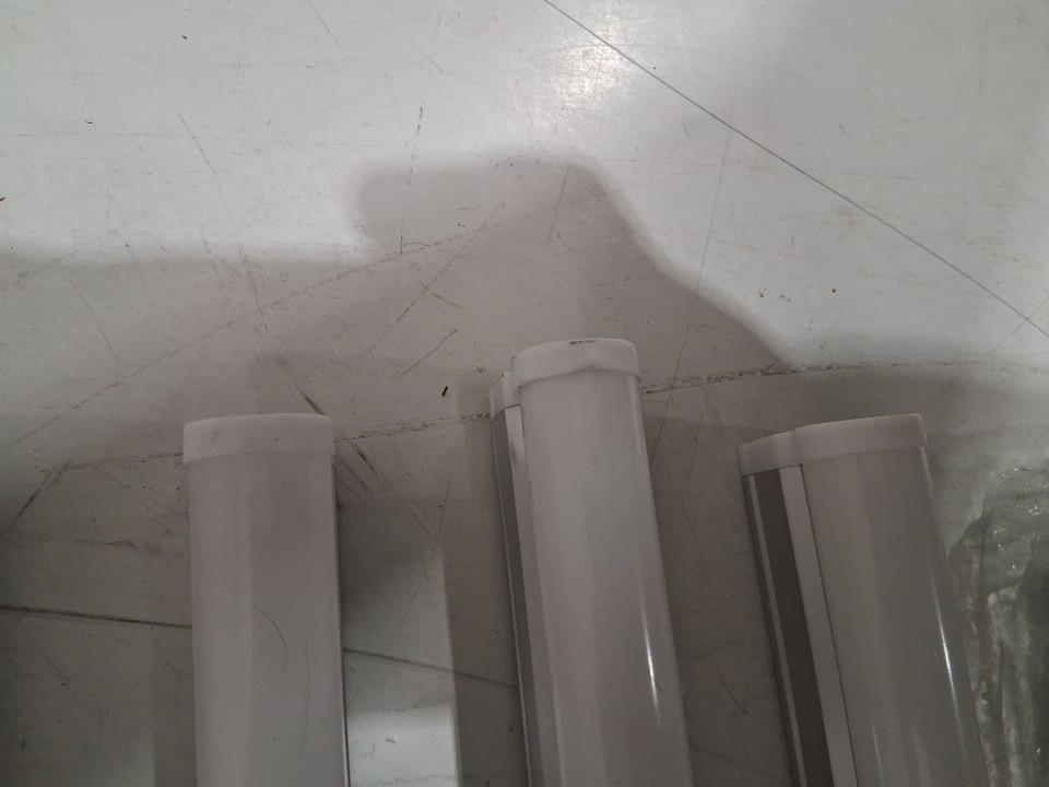 Two lights have minor damage to the plastic housing on the ends, one light has minor scuffs on the plastic housing on the end and multiple lights have minor scuffs, scratches and small dents on the metal housing (see photos).