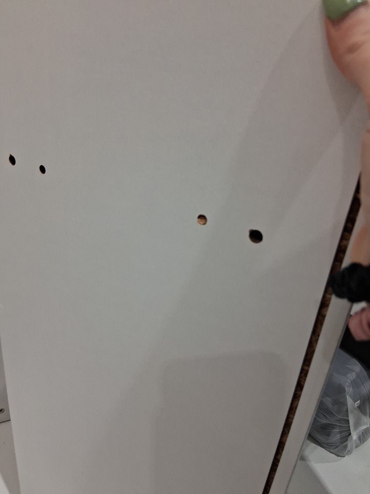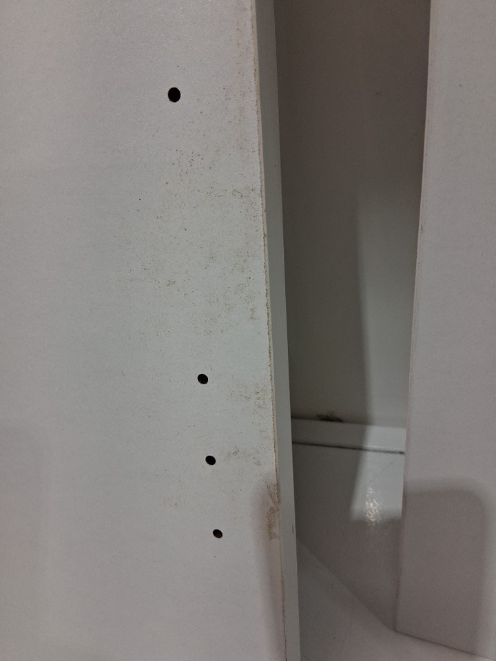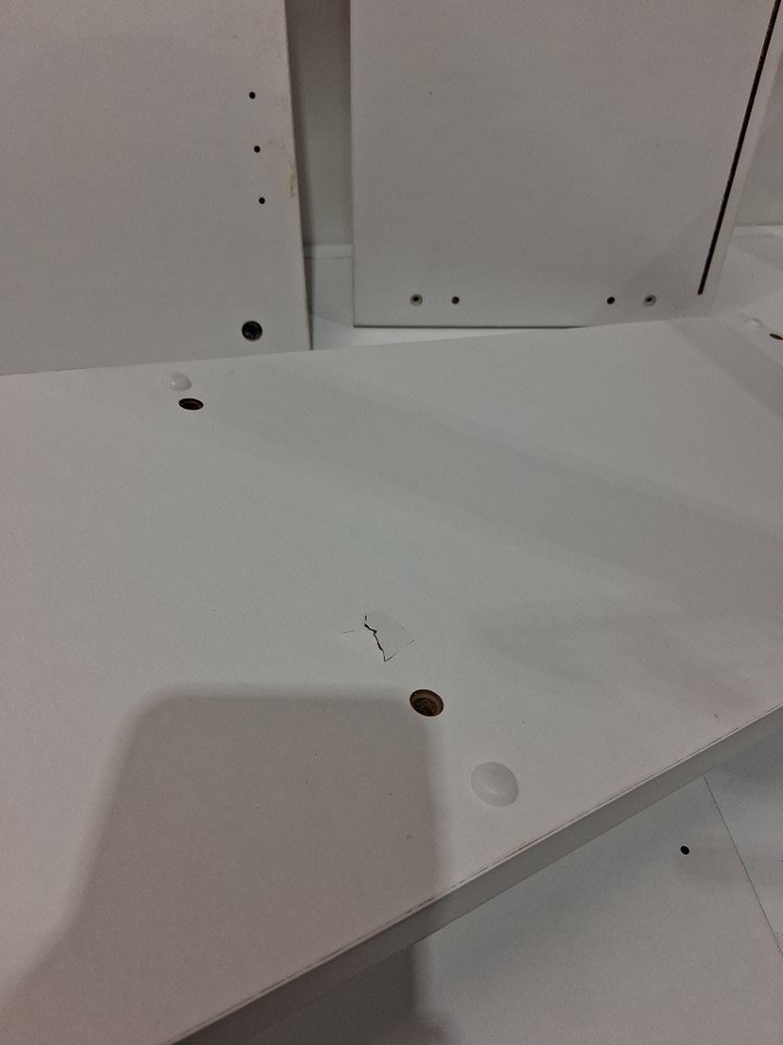 Small pucker from the wood on the underside of one of the bigger pieces. As well as some wear and tear on some of the edges. See image details.