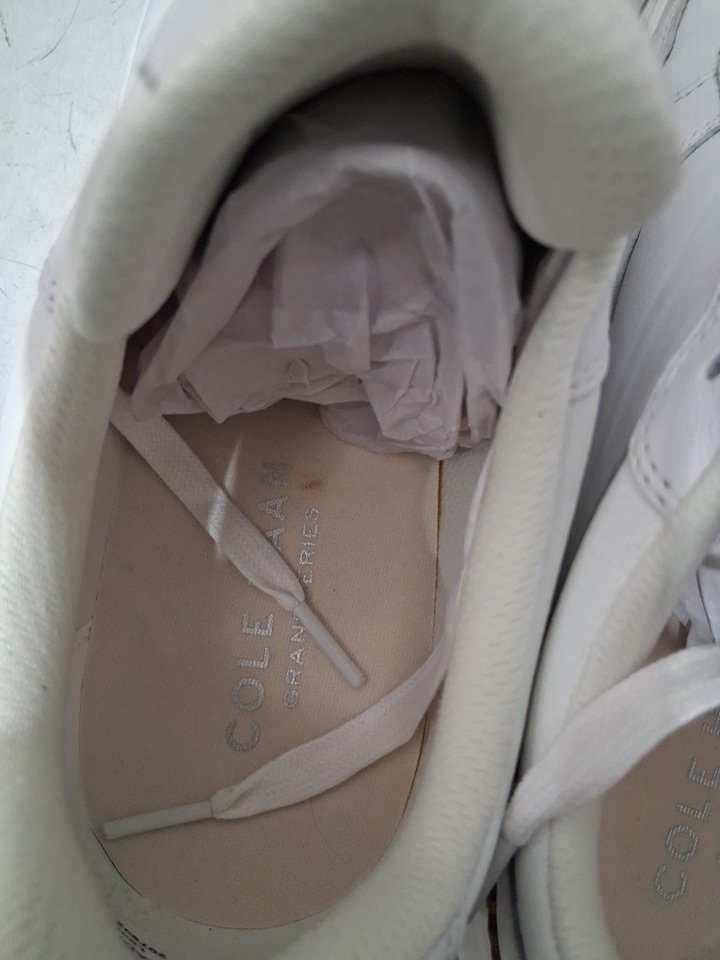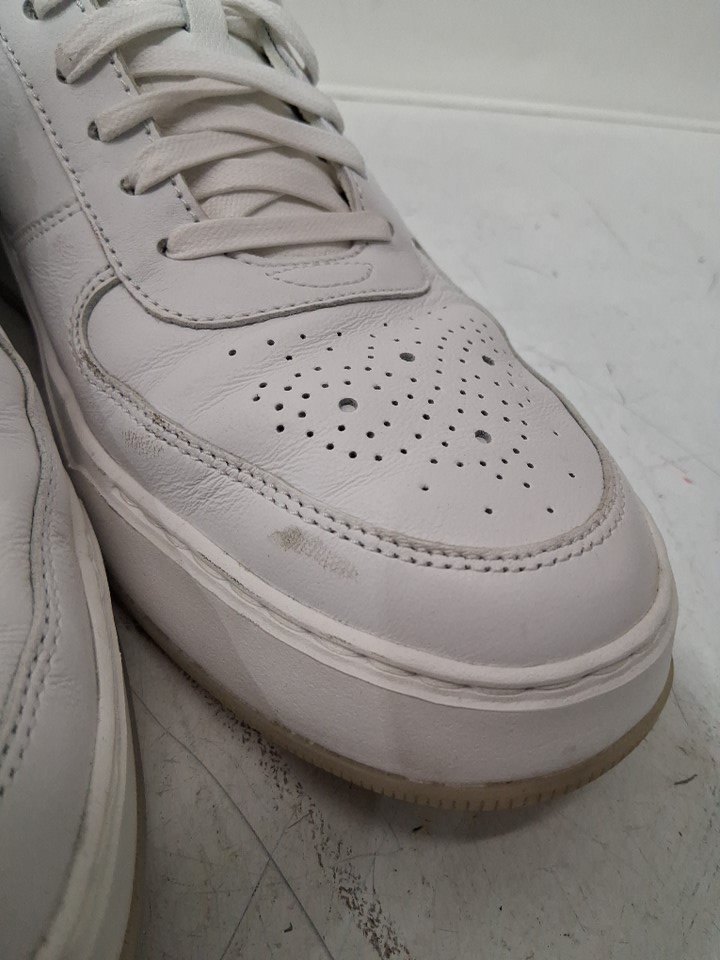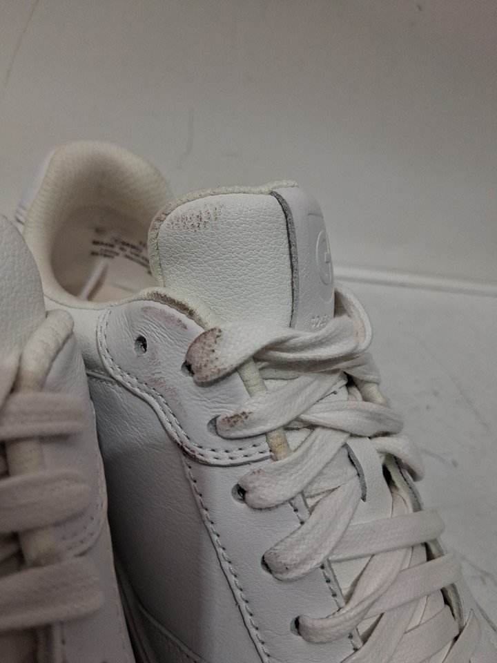 item has some scuffing on the toe and some markings on where the ankle part is on the lace and shoe also small stain inside shoe and light wear on bottom ( see photos)